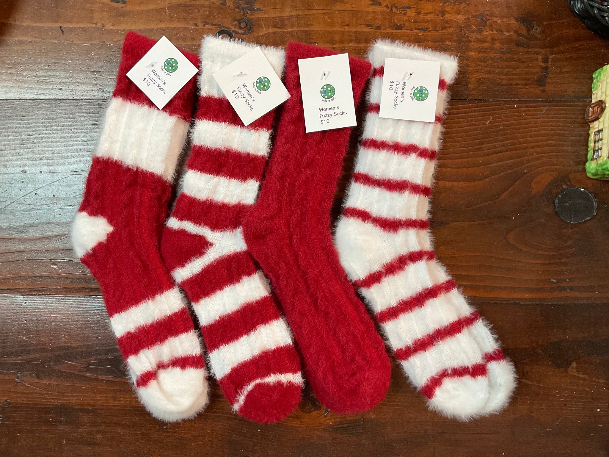 Women’s Fuzzy Socks - Red and White