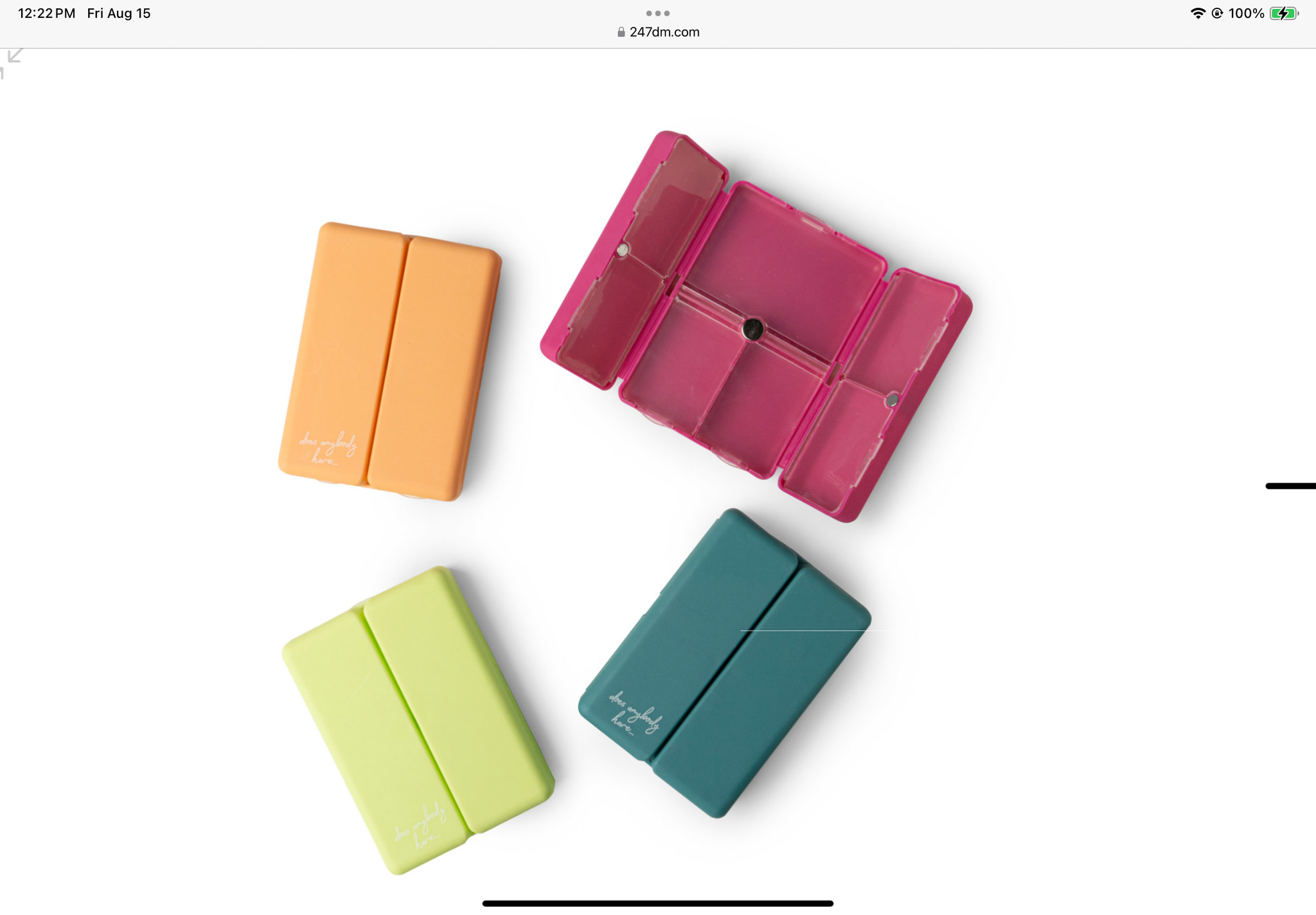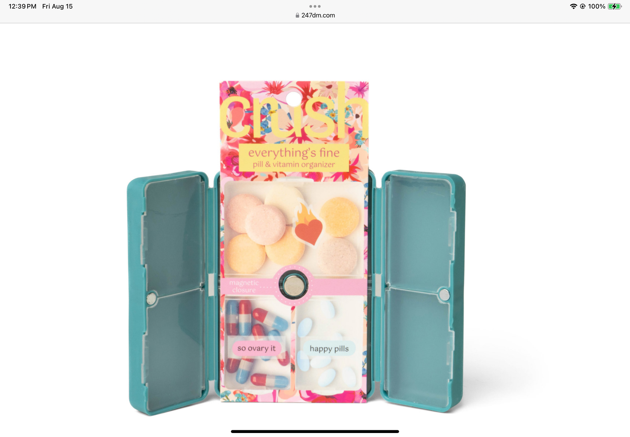 Everything really is fine when you’re a walking pharmacy. With seven snap-close compartments for just-in-case, travel and everyday doses, these compact pill and vitamin organizers come with two sheets of stickers to label each medication. Customers can get one for the car and one for their purse!
