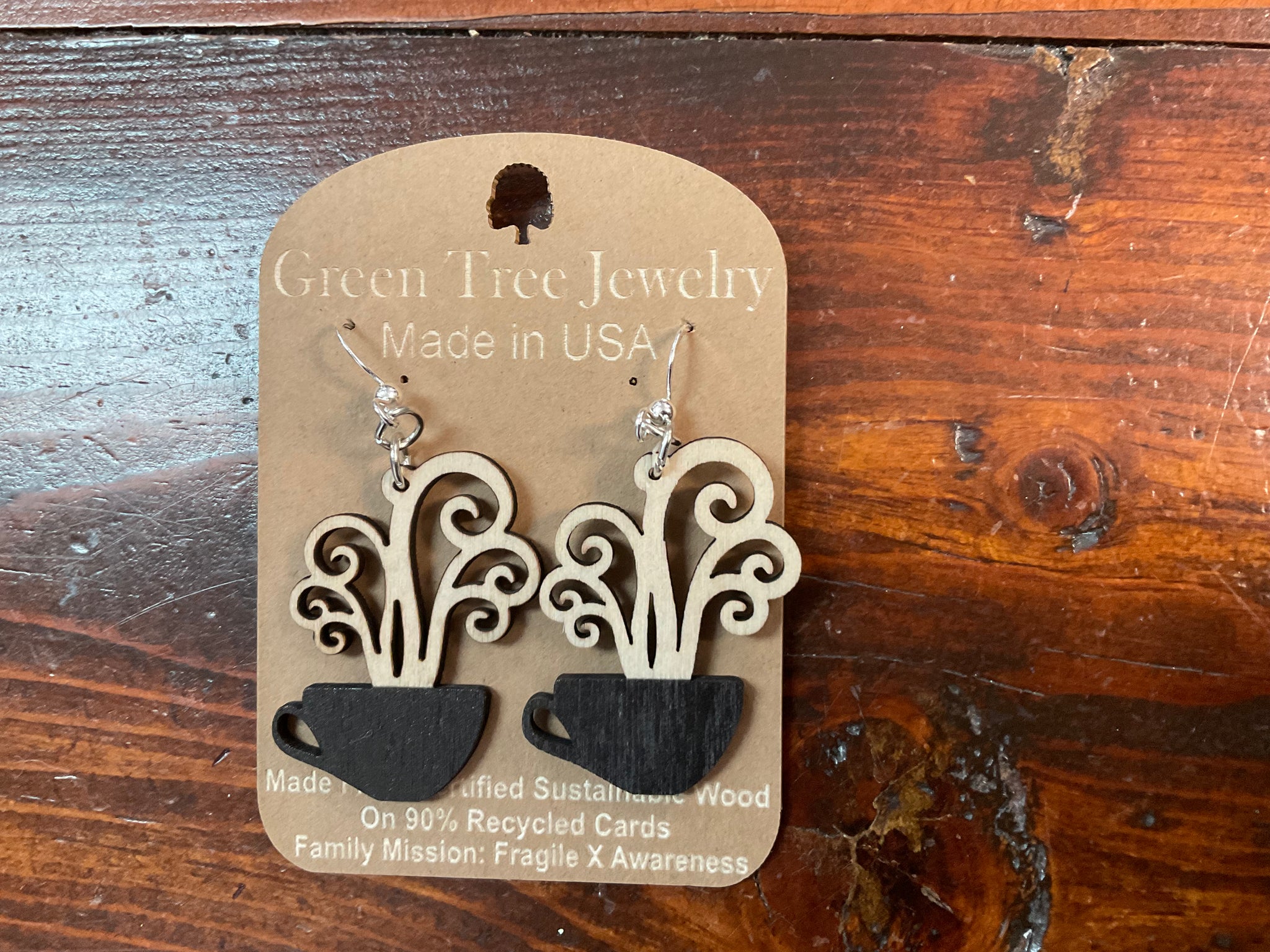 Green Tree Jewelry is made in the USA and uses certified sustainable wood. The earrings are on 90% recycled cards.