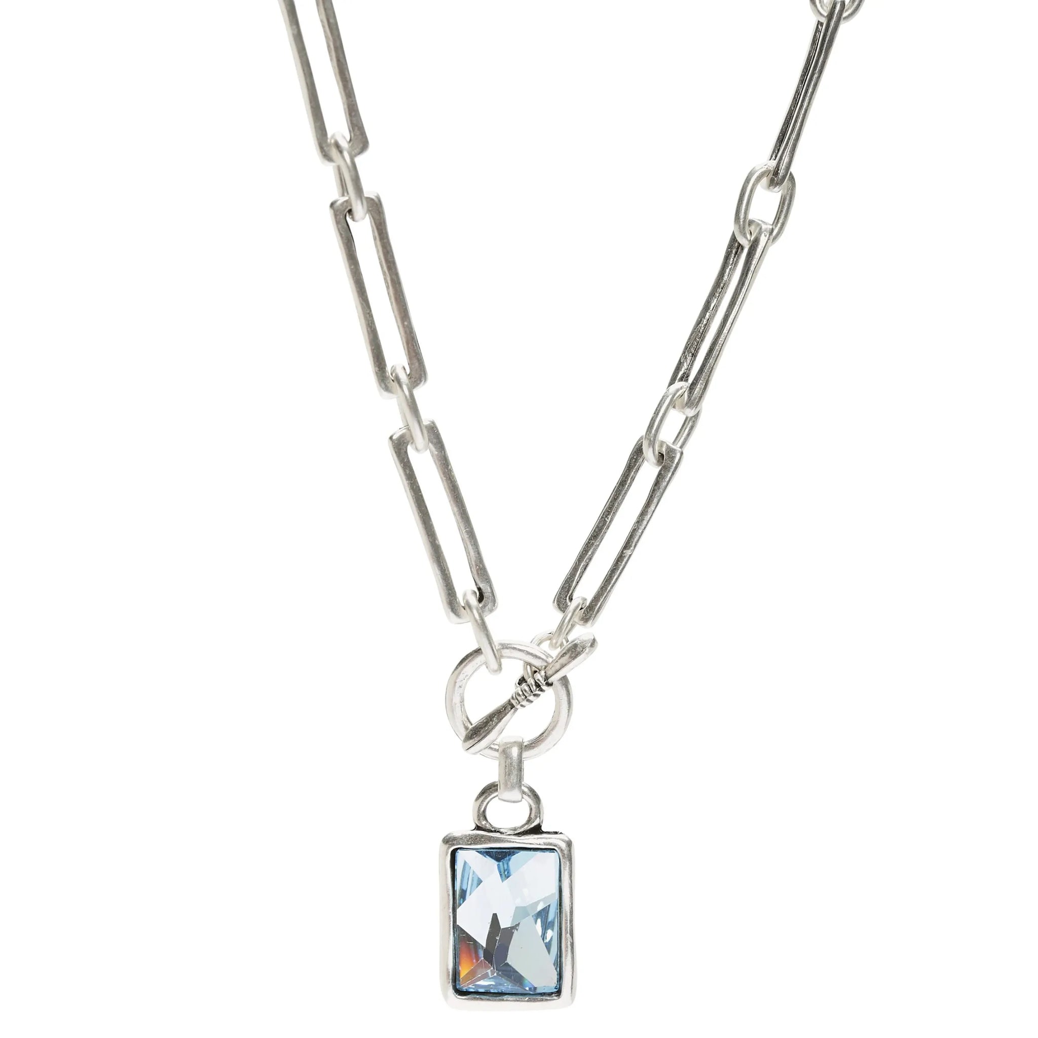 Handmade Blue Crystal Pewter Necklace by Chanour style # 3816 Blue