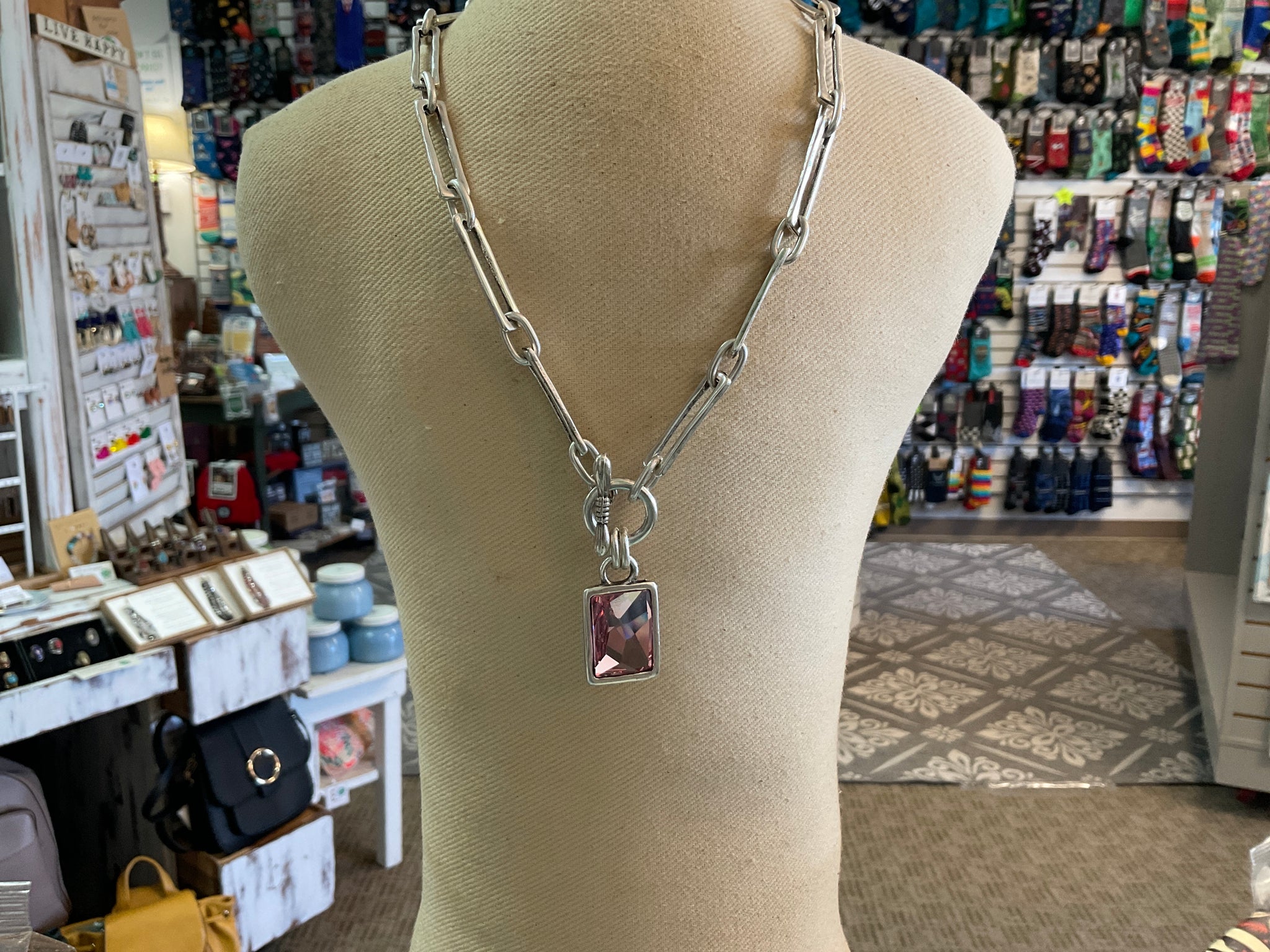 Handmade Pink Crystal Pewter Necklace by Chanour style # 3816 Pink