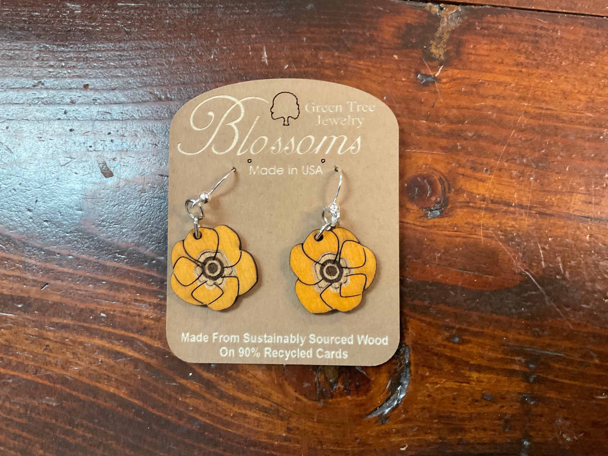Poppy Flower Blossoms Earrings - Green Tree #158