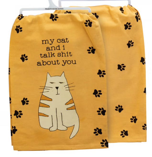 Recommended for the “my cat and i talk shit about you” Kitchen Towel