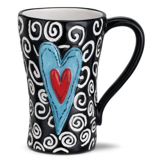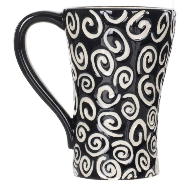 Brighten the world and color it happy! Artist Tracy Pesche's friendly designs center around the heart and spark the creative in everyone. Great for wedding gifts or birthday surprises, the White Swirls Mug features lighthearted designs that are just plain fun. Dimension: 3.5"w x 3.5"d x 5.5"h